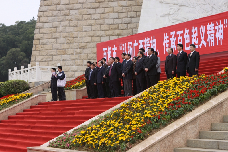 百色市“弘扬广西精神、传承百色起义精神”活动启动暨万人签名仪式在百色起义纪念馆广场举行为深入贯彻落实自治区党委关于在全区开展“解放思想,赶超跨越”大讨论活动的重大部署,市委、市人民政府于2012年2月28日在全市举行“弘扬广西精神、传承百色起义精神”活动启动暨万人签名仪式。活动设主会场和分会场,主会场设在百色起义纪念馆广场,各县(区)设分会场,全市参加此次活动的党员干部、社会各界代表共一万余人。